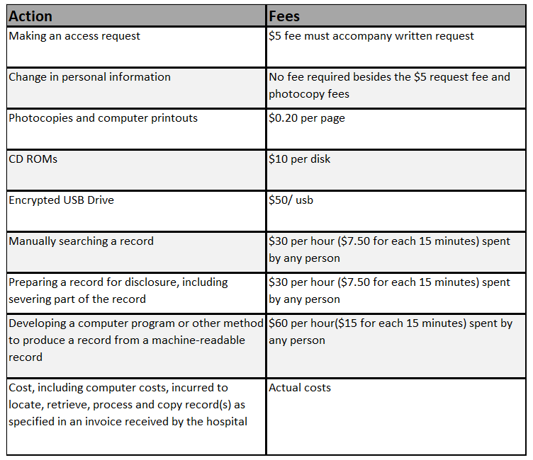 You have a right to see your personal health information and to get a copy of it by asking us for it, or by writing to us, and paying a reasonable fee.